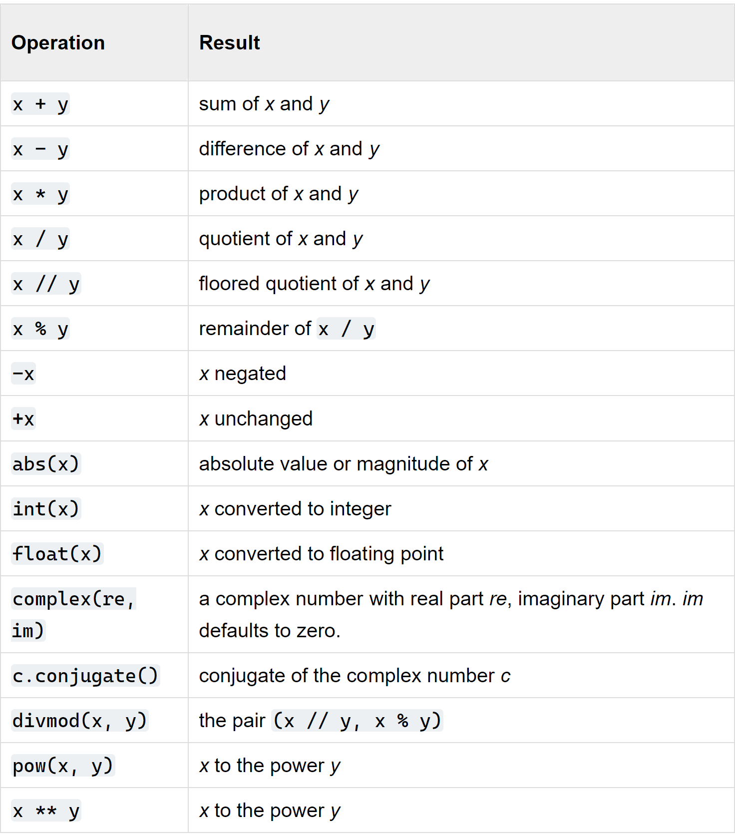 operators for calculations