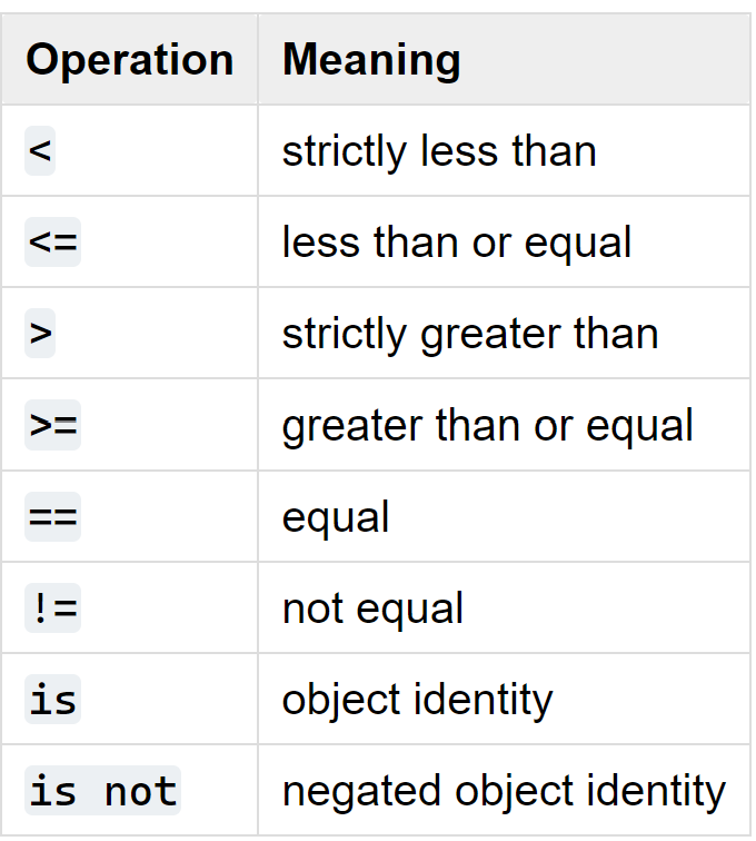 comparison operators