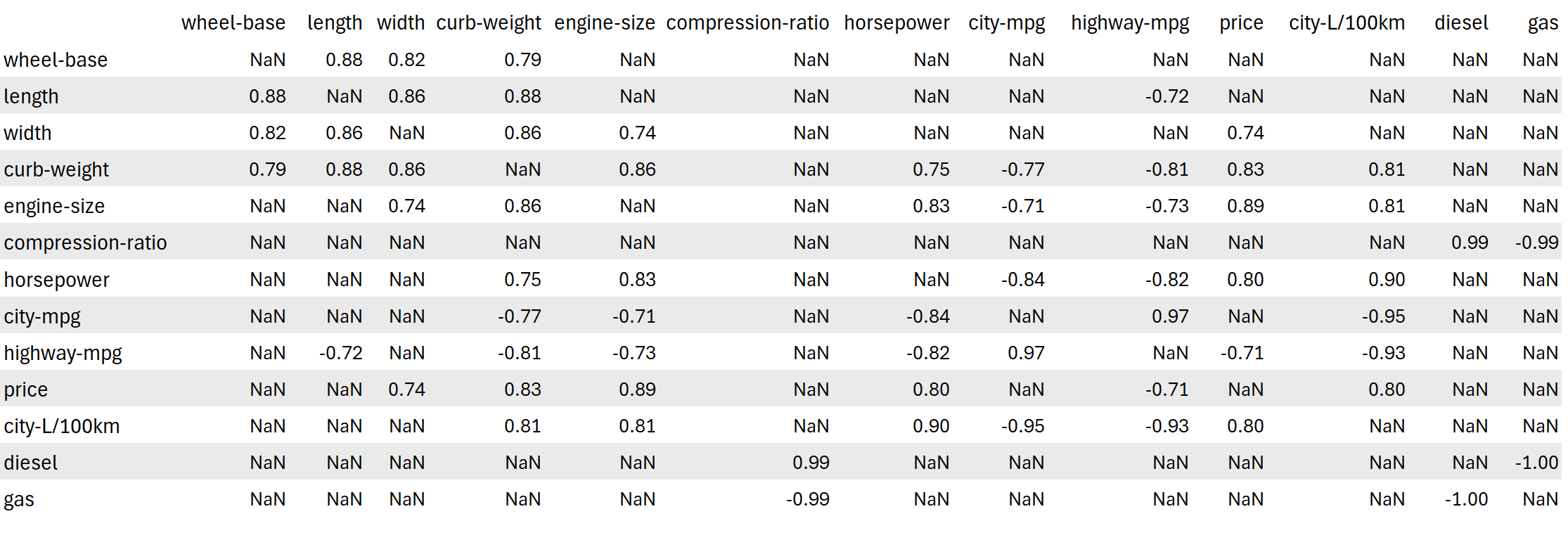 # you can also use "filtered-correlation.fillna('-', inplace=True)" to have a cleaner look